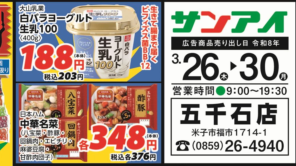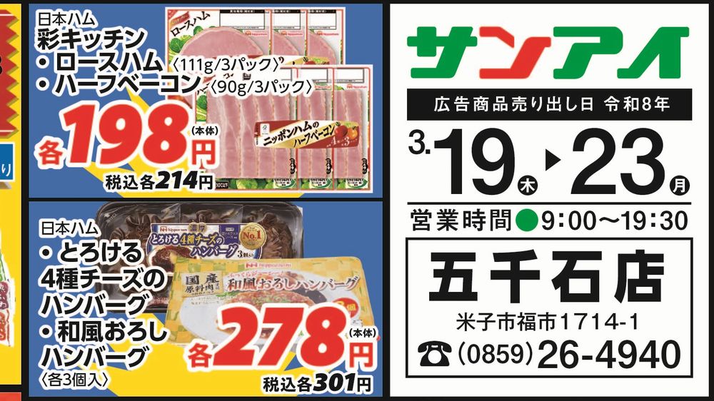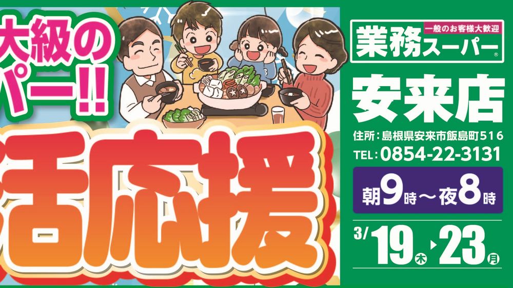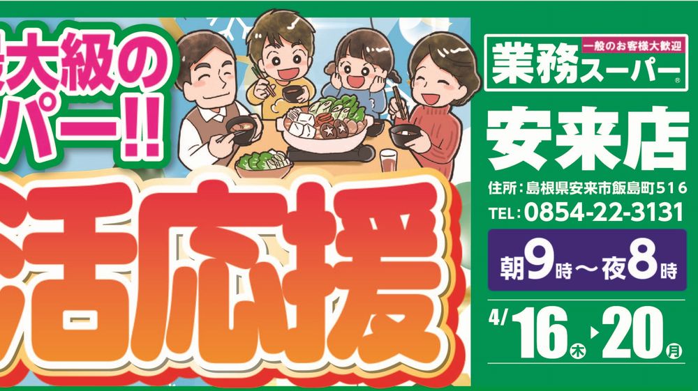 現在、ホームセンター五千石店(米子市福市)、業務スーパー安来店(安来市飯島町)、ドラッグストア内にて生鮮コーナーテナント出店(米子市東福原店、道笑町店、両三柳店の3店舗内)、で事業展開。2026年春には業務スーパー境港店を開業予定です。